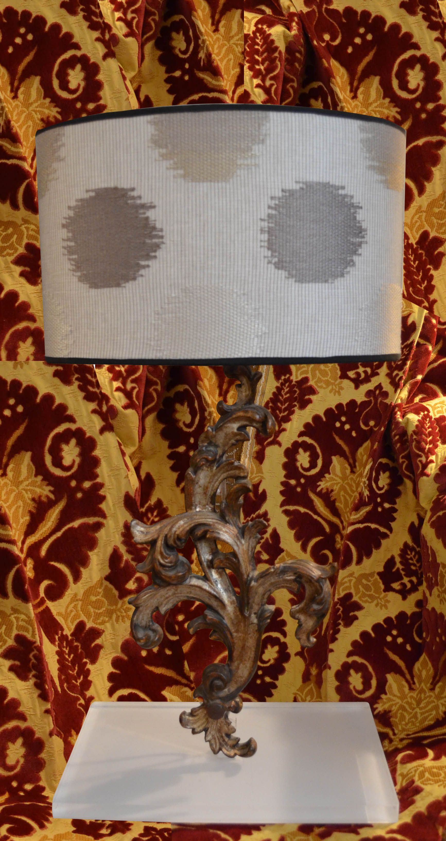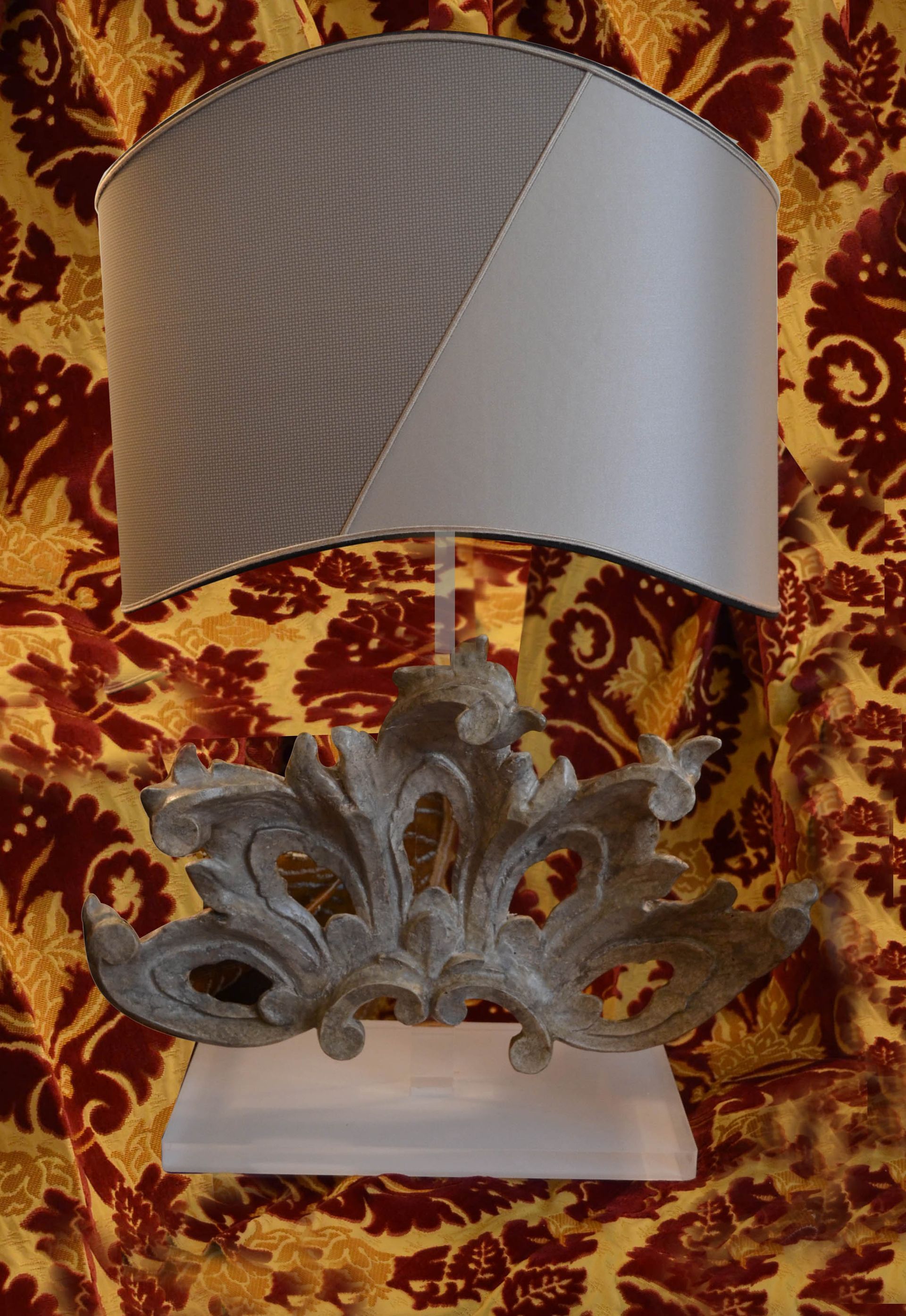 Abat-jour realizzate presso il nostro atelier, utilizzando fregi d'epoca montati su struttura in plexiglas. Le ventole sono disponibili ma a solo scopo esemplificativo e non incluse nella proposta.