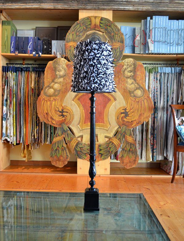 Lampshades made in our atelier, using period friezes mounted on a Plexiglas structure. Fans are available but for example purposes only and not included in the offer.