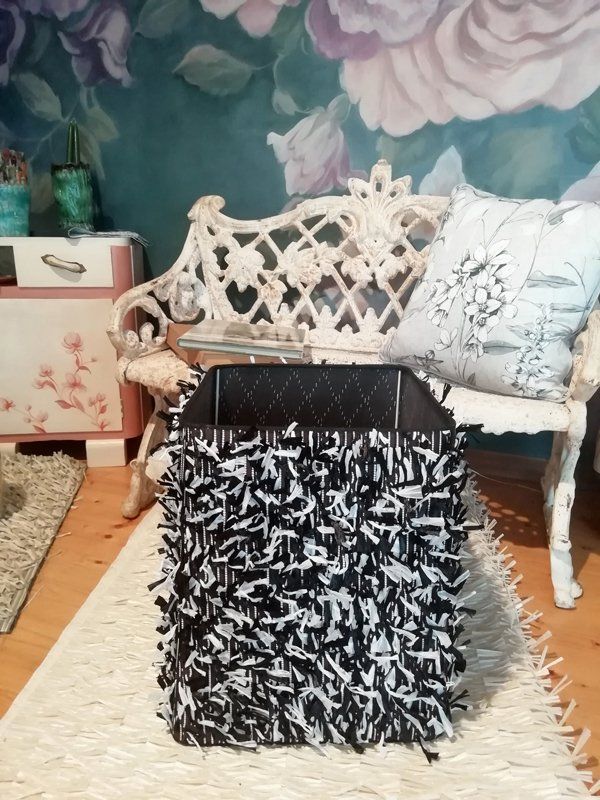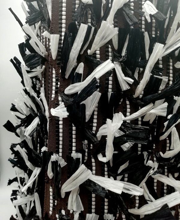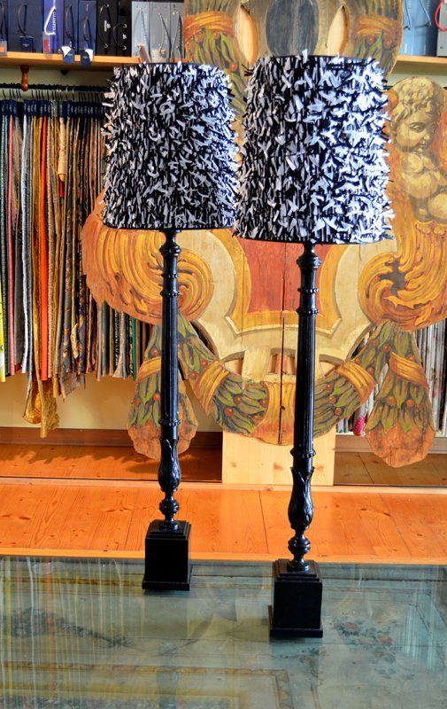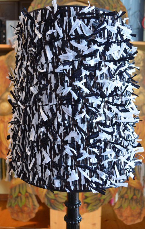 C813 Pair of handcrafted black and white raffia lampshades, diam.cm 25, h.39