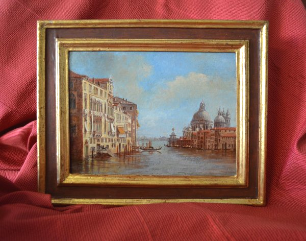 Oil painting on wood with the subject "view of Venice" with frame. Recent production