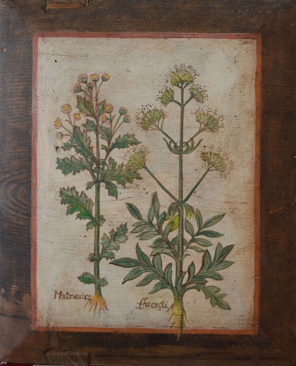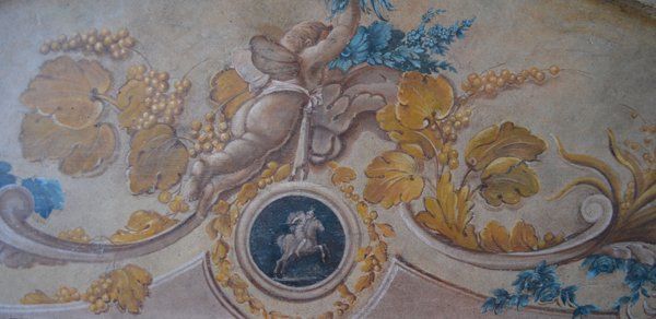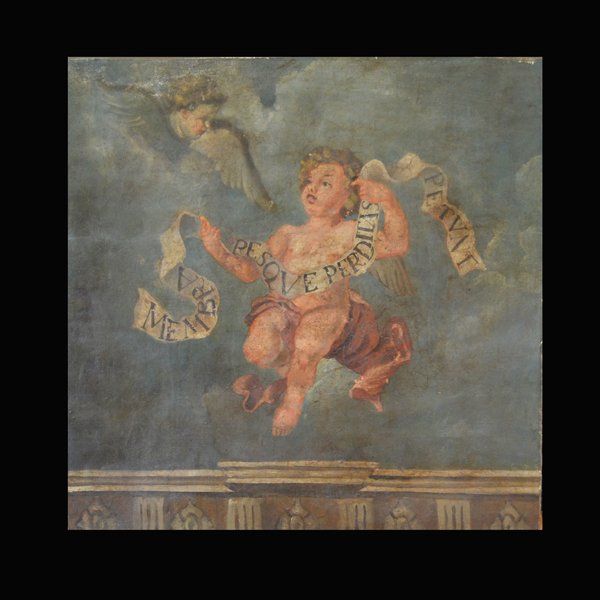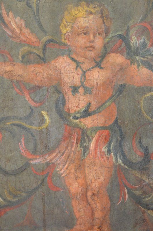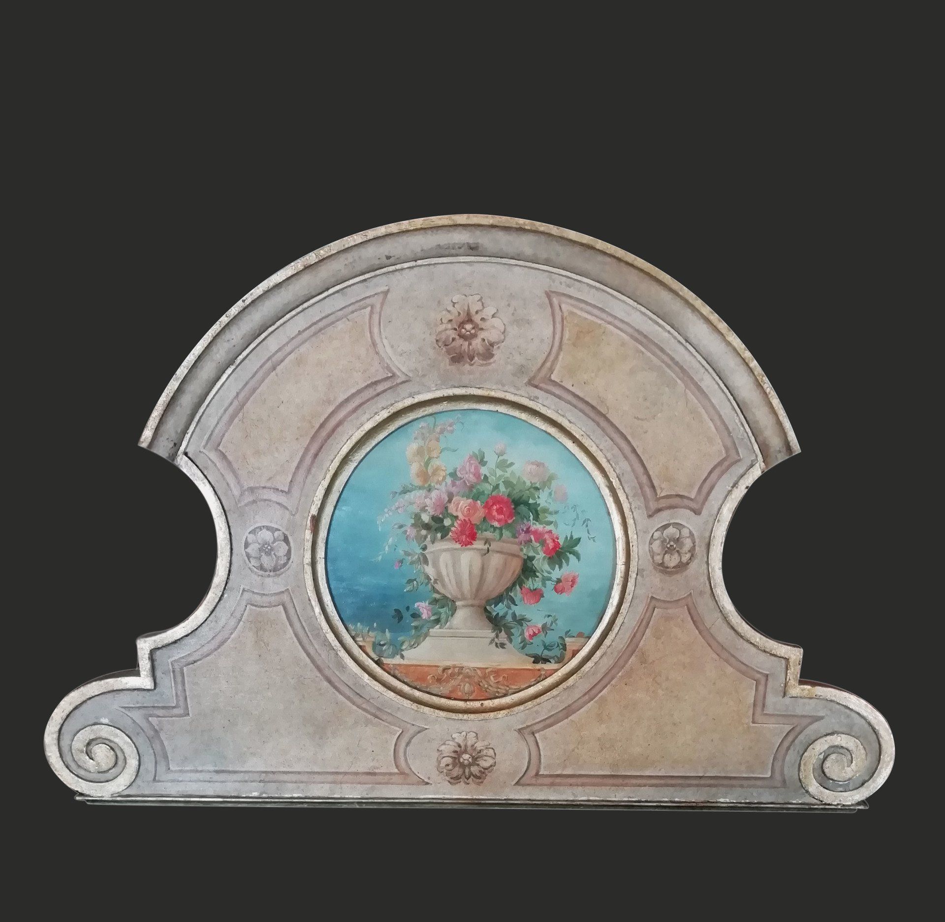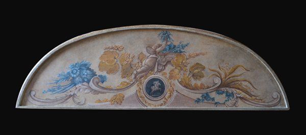 C535 Over door early '900 with fake stone decoration and round with central floral triumph