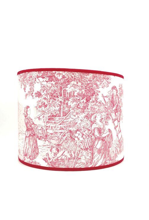 C611 Pair of lampshades in French toile de jolie fabric bordered with canettes.