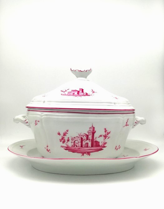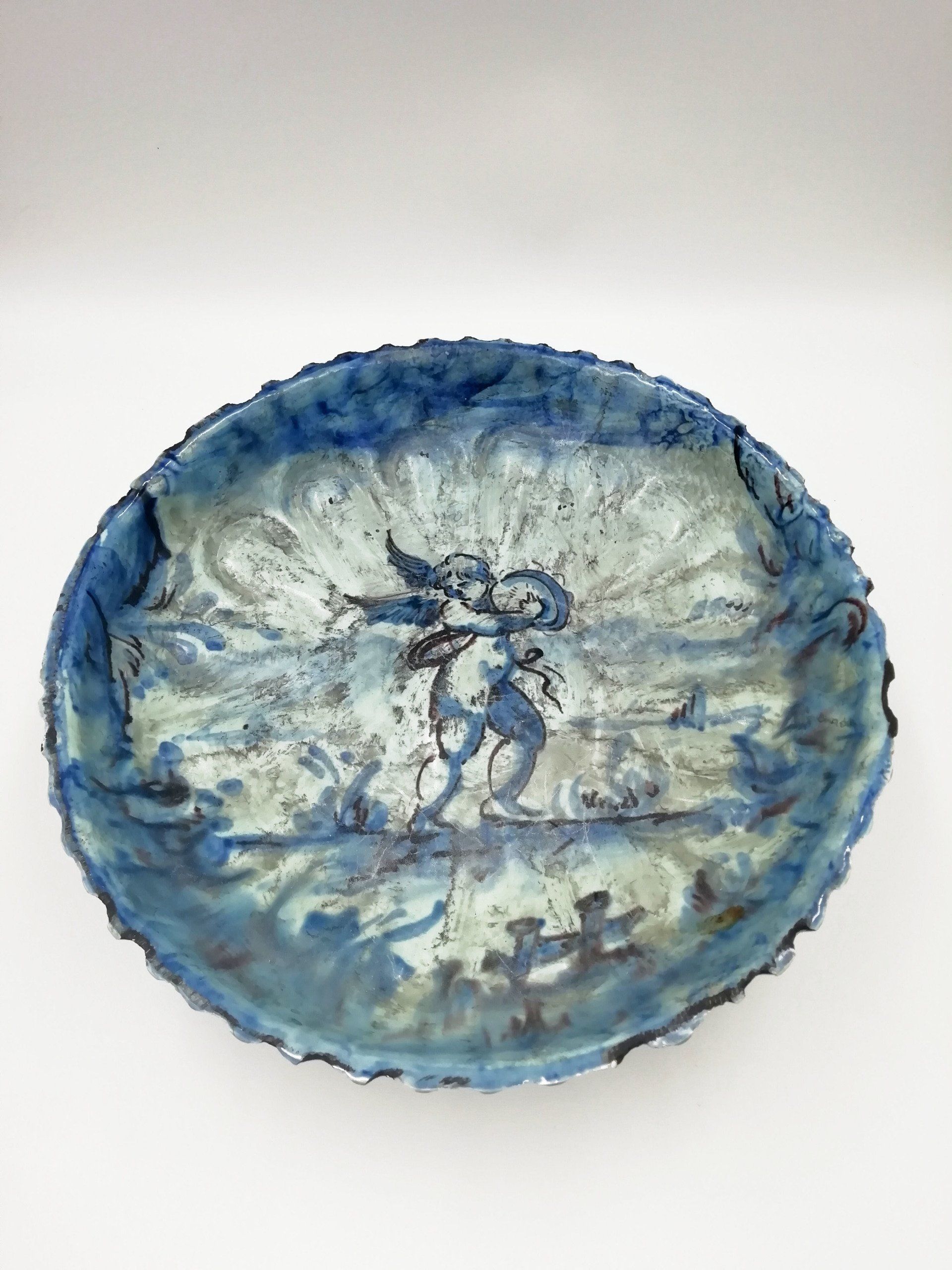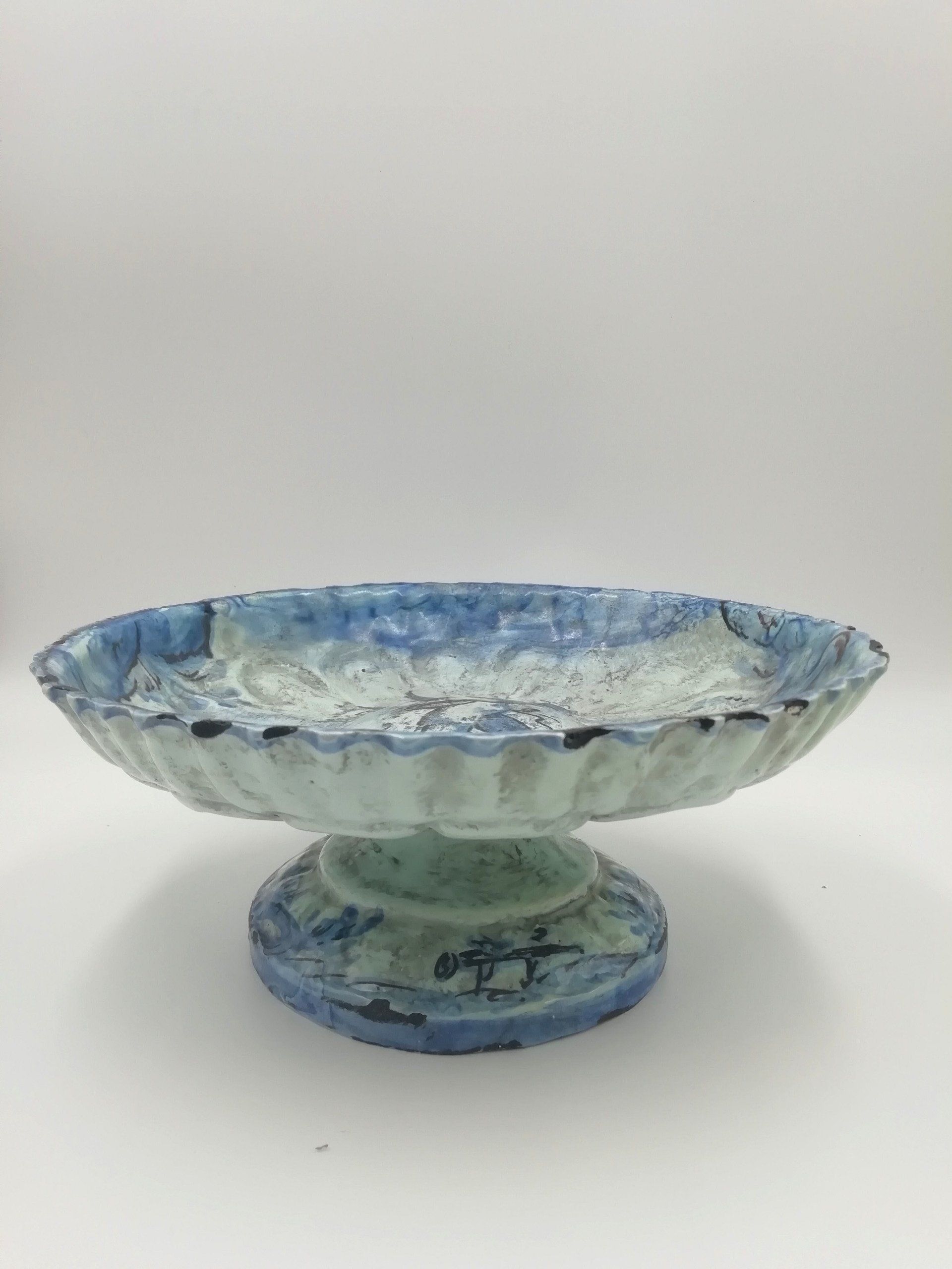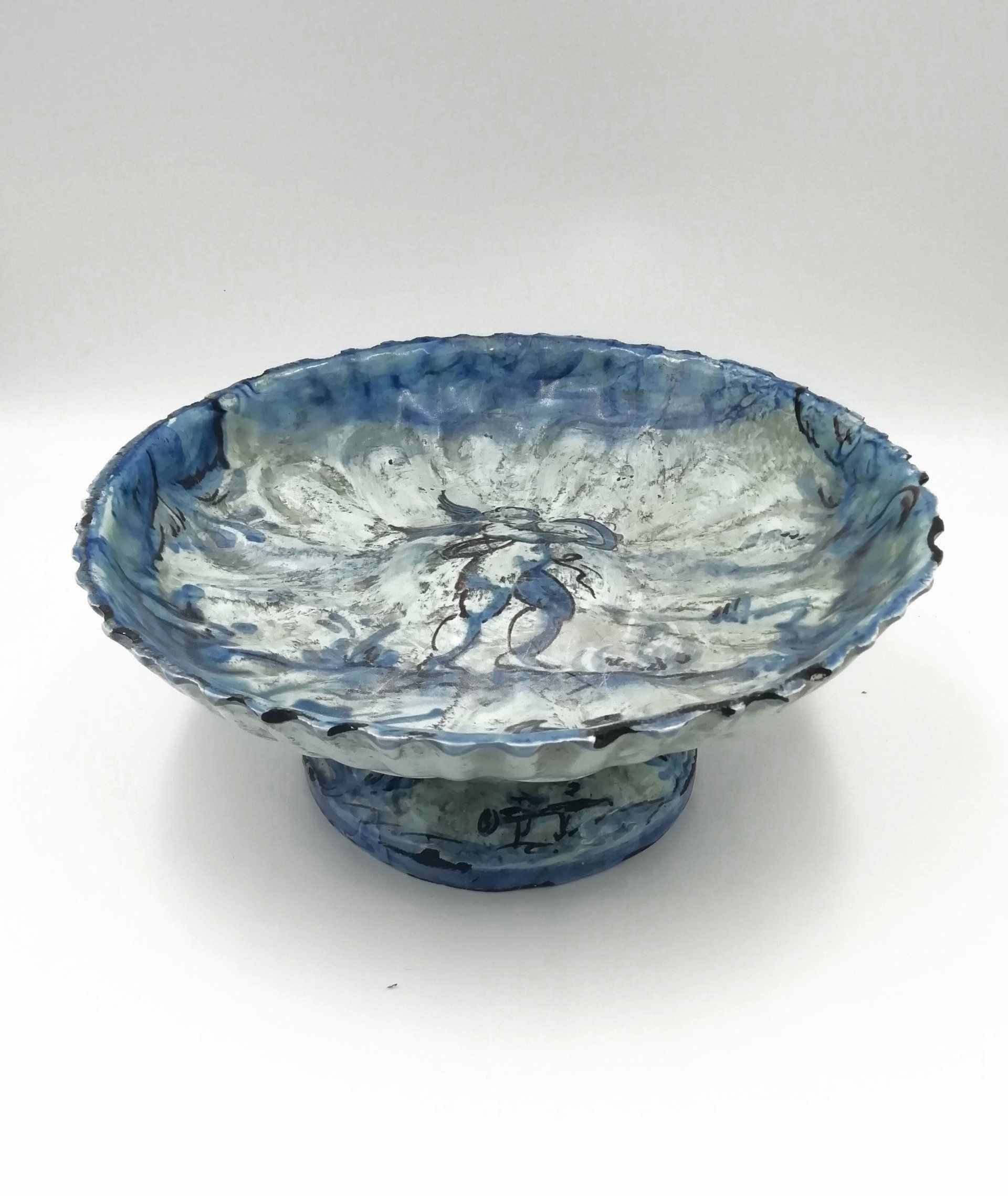 C538 Colored glass boule and punch ladle complete with plate and silver lid. Italian Liberty.